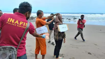 Tersangka SS (51) memperagakan 15 reka adegan rekonstruksi pembunuhan di sekitar pantai Polsek Cisolok, Sukabumi. Kasat Reskrim Polres Sukabumi, AKP I Putu Asti Hermawan Santosa mengatakan dalam rekonstruksi yang diperagakan oleh tersangka terungkap kasus pembunuhan terjadi saat ajakan berhubungan intim oleh tersangka ditolak oleh korban D (18).