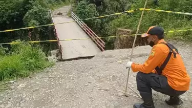 "Untuk dugaan sementara akibat pergeseran tanah ditambah gerusan air sungai hingga merusak bagian bawah penyangga jembatan," ucapnya. (usn/act)