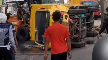 Sopir Minum Obat Batuk Sebelum Berkendara Akibatkan Truk Ekspedisi Terguling di Bekasi