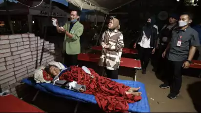 Sejak tiba di lokasi bencana pada Selasa (22/11) dini hari, Mensos Risma sudah berkeliling ke beberapa titik, salah satunya di RSUD Sayang yang menampung ratusan korban luka-luka.