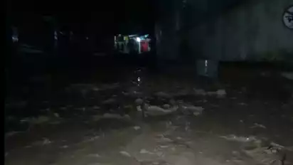 Kabupaten Sumedang, Jawa Barat - Banjir bandang luapan Sungai Pamatang Cisurupan, menerjang permukiman warga di Dusun Cisurupan, Desa Sawahdadap, Kecamatan Cimanggung, Kabupaten Sumedang, Jawa Barat pada Sabtu (17/12/22) malam.