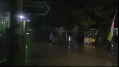 Cirebon, Jawa Barat - Ratusan rumah di tiga kecamatan terendam banjir akibat luapan Sungai Cikenanga, Kabupaten Cirebon, Jawa Barat, Selasa (20/12/2022) malam.