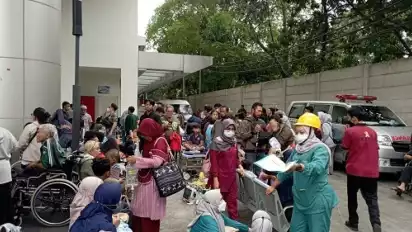 Para petugas rumah sakit juga sibuk untuk menyelamatkan seluruh pasien anak-anak maupun dewasa yang ada di dalam rumah sakit.