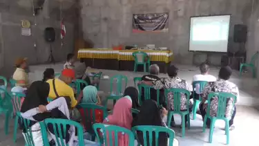 Mereka memberikan dukungan dan semangat kepada atlet kebanggaan kota kretek tersebut melalui layar lebar yang digelar di aula balai desa.