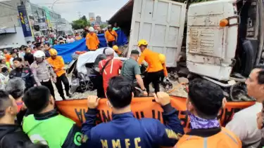 Semarang, tvOnenews.com - Seorang anak yang dievakuasi terjepit saat mobil yang ditumpangi tertimpa truk pasir di Jalan Prof Hamka, Kecamatan Ngaliyan Kota Semarang pada Rabu (7/6/2023) sekira pukul 11.00 WIB dinyatakan meninggal dunia.