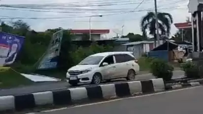 Sementara satu foto memperlihatkan mobil Honda Mobilio bernomor polisi G 1630 BZ yang diduga sengaja ditinggalkan sang pengemudi.Â
