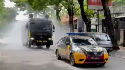 Penyemprotan dilakukan jajaran Polres Kudus. Tidak hanya di jalan protokol dan lokasi strategis lain, disinfektan juga disemprotkan hingga ke wilayah perkampungan di Kabupaten Kudus. Ini dimaksudkan, meski kasus Covid-19 kembali meningkat, harapannya tidak separah tahun lalu.