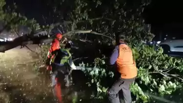 Hujan deras disertai angin kencang melanda wilayah Kabupaten Pemalang, Jawa Tengah, Selasa (11/11/2025) sore. Akibatnya, sebuah pohon besar di pinggir jalan utama Pantura sebelah barat SPBU Petarukan tumbang dan menutup akses jalan utama.