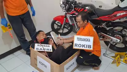 Meski korban sudah meninggal dunia, aksi keji tersangka, juga nekat memotong kedua kaki korban dengan cutter, agar seluruh bagian tubuh, bisa dimasukan ke dalam koper.