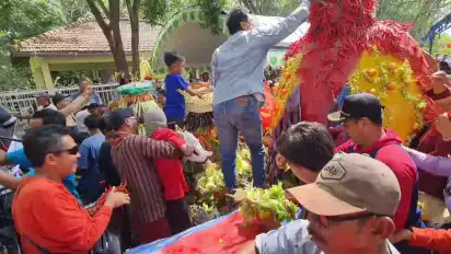 Berharap Berkah, Ratusan Warga Pati Berebut Gunungan Hasil Bumi dan Tumpeng