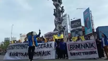 Aksi damai sejumlah mahasiswa ini sebagai aksi penolakan terhadap kenaikan harga BBM subsidi oleh pemerintah yang diumumkan Presiden Jokowi pada Sabtu (3/9/2022) kemarin.