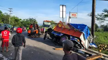 " Truk dari atas terlihat kehilangan kendali diduga rek tak berfungsi dan sesampainya dilokasi kejadian truk menabrak median jalan, masih melaju masuk ke jalan arah Solo dan menabrak sepeda motor yang melaju dari arah Blotongan menuju Solo. Truk baru berhenti setelah terguling," jelas Kasat Lantas.