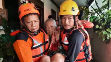 Tim SAR Semarang saat Evakuasi Seorang Nenek dari Rumah ke Pos Pengungsian
