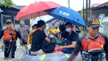 Dari pantauan tvonennews.com, tim SAR gabungan Semarang evakuasi warga dari rumah ke pos pengungsian.