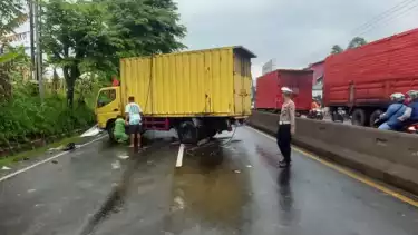 Kecelakaan Tunggal Truk Boks Terguling Melintang di Jalan Semarang - Solo