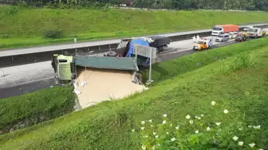 Sebuah Truk Terbakar Setelah Mengalami Kecelakaan di Tol Solo Semarang