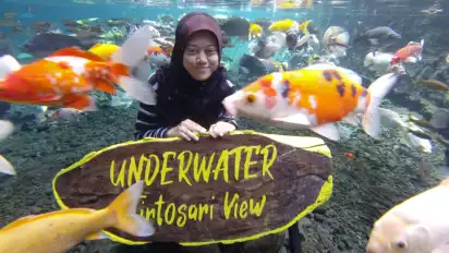 Namanya spot foto underwater atau wahana foto bawah air, yang diklaim merupakan wahana foto bawah air tawar pertama di Jawa Timur.