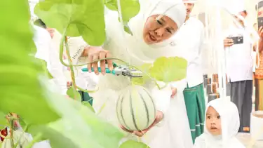 Usai Sholat Idul Adha, Gubernur Khofifah Ajak Cucu Tanam dan Panen Golden Melon di Green House Masjid Al Akbar