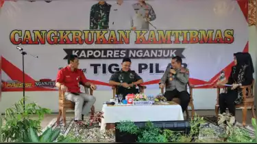 Nganjuk, tvOnenews.com - Upaya untuk mewujudkan Pemilu 2024 di wilayah Kabupaten Nganjuk damai, Kapolres Nganjuk, AKBP Muhammad meminta, untuk memperkuat peran tiga pilar yaitu TNI-Polri dan pemerintah dari tingkat kabupaten hingga tingkat desa di seluruh Kabupaten Nganjuk.