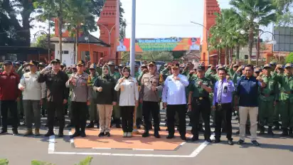 Mojokerto, tvOnenews.com - Menjelang pelaksanaan Pemilihan Umum (Pemilu) atau pesta demokrasi tahun 2024, Pemerintah Kabupaten Mojokerto menggelar Apel Kesiapan Anggota Satlinmas dalam rangka mendukung penyelenggaraan Pemilu dan Pemilihan 2024.