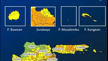 Berikut beberapa wilayah Jatim yang memasuki cuaca ekstrem yakni Bangkalan, Kota Batu, Bojonegoro, Bondowoso, Gresik, Jombang, Kota Kediri, Malang, Madiun, Magetan, Mojokerto, Nganjuk, Ngawi, Pamekasan, Probolinggo, Sampang, Sidoarjo, Situbondo, Surabaya, Kediri, Banyuwangi, Blitar, Jember, Lamongan, Lumajang, Pasuruan, Ponorogo, Sumenep, Tuban, Pacitan, Trenggalek, Tulungagung.