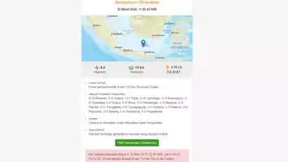 Gempa Bumi Magnitudo 6 di Tuban Terasa hingga ke Jawa Tengah
