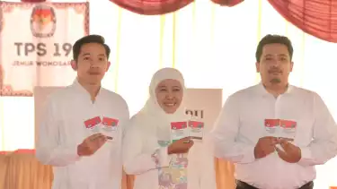 Khofifah Salurkan Hak Pilih Bareng Dua Putra, Optimis InsyaAllah Menang Signifikan