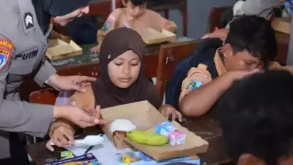 Pemberian asupan berupa makan siang bergizi secara gratis ini dlakukan oleh jajaran Polres Gresik sebagai bentuk sosialisasi Program Makan Bergizi Gratis di UPT SD Negeri Bedilan, Jalan Aks Tubun, Kecamatan Gresik, Gresik.