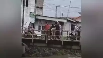 "Kemarin sempat mau loncat, tangannya bergelantungan kakinya sudah turun, untungnya ada orang-orang yang nolong. Saya bantuin mengangkat biar gak terjun ke sungai, " kata Amiril, Kamis (26/12).