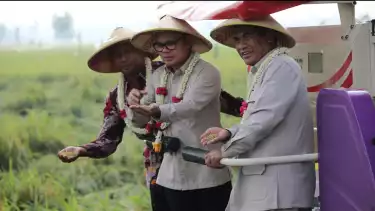 "Panen pakai traktor itu lebih cepat dan bersih, terima kasih pak menteri," kata Ali Sahab. (arm/far)