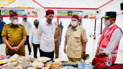 Presiden kemudian menuju stan kerajinan lokal khas Madura yang berada di ruang tunggu Bandar Udara Trunojoyo, untuk membeli dua kain batik dan satu udeng blangkon berwarna merah kecoklatan.