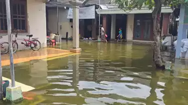 Selain menggenangi rumah warga, banjir juga berdampak pada sawah tambak petani, serta lembaga pendidikan. (mmr/far)