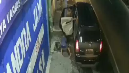 Dalam rekaman CCTV nampak seorang pemuda  turun dari mobil Toyota Kijang Innova dengan nomor Polisi M-1317-HG, dan bergegas mengambil tutup drainase atau saluran air.