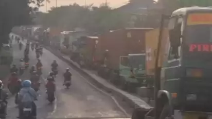 Kendaraan besar yang dikemudikan Nova, warga Bubutan, Surabaya, melintang dan menutupi sebagian besar badan jalan. Akibatnya, seluruh kendaraan yang melintas di jalur utama terpaksa berhenti dan menunggu proses evakuasi.
