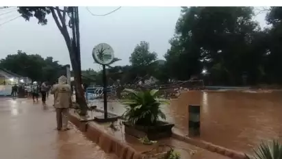 Akibatnya, air meluap ke jalan dan area permukiman di sekitarnya. Genangan mulai terlihat di sejumlah titik dengan ketinggian bervariasi. (kso/hen)