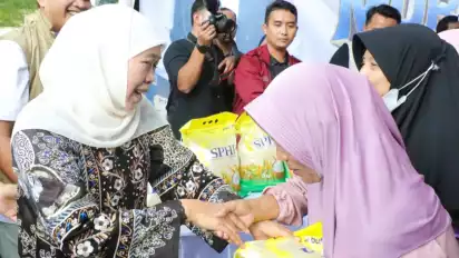 Pamekasan, tvOnenews.com – Gubernur Jawa Timur Khofifah Indar Parawansa menggelar Pasar Murah di Taman Parembhegen Patemon, Kabupaten Pamekasan, Minggu (8/3). Hal ini dilakukan sebagai upaya pengendalian inflasi dan stabilisasi harga bahan pokok menjelang Hari Raya Idul Fitri.