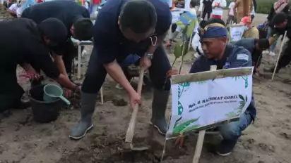 "Tanam mangrove yang dirangkai dengan larung sesaji ini sebagai ungkapan syukur nelayan, sekaligus menjaga alam dari pemanasan global," kata Rachmat Gobel usai kegiatan.