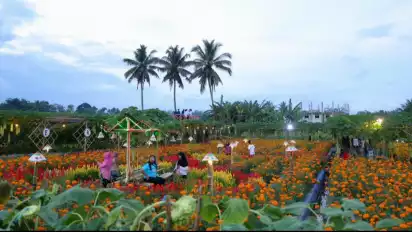 Banyuwangi, Jawa Timur - Komoditi hortikultura di Banyuwangi terus digalakkan untuk mendongkrak pariwisata. Salah satunya, kebun bunga. Petani didorong menanam bunga sebagai destinasi wisata bunga. Hasilnya, persawahan disulap menjadi kota kembang, penuh dengan bunga warna-warni.