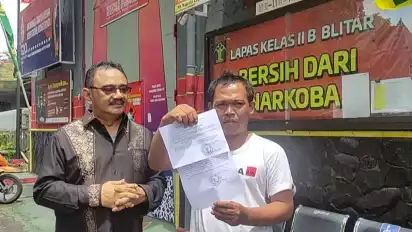Blitar, Jawa Timur – Wajah sumringah dan haru tampak pada saat Edi Prabowo (38) warga Desa Mandesan, Kecamatan Selopuro, Kabupaten Blitar, saat keluar dari pintu Lembaga Pemasyarakatan Kelas 2 B Blitar. Pasalnya, Edi Prabowo telah divonis bebas oleh Pengadilan Negeri Blitar, pada Selasa (29/11).
