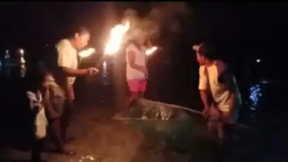 “Kita pakai obor dan seru untuk mengambil Laornya, waktu kita nyalakan obor di atas air nanti Laor itu