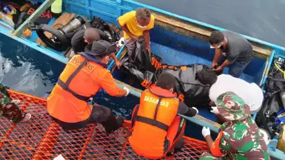 Halmahera Selatan, Maluku Utara - Tim SAR Gabungan kembali menemukan lima korban dalam bangkai kapal Motor Cahaya Arafah di kedalaman 48 Meter di perairan Desa Tokaka, Kecamatan Gane Barat Utara, Kabupaten Halmahera Selatan, Maluku Utara, Kamis (21/7/2022).