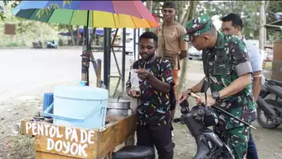 Danrem menyampaikan sangat bangga dan mengapresiasi kegigihan anak muda Papua asal Kabupaten Yahukimo tersebut untuk berjualan cilok menggunakan motor gerobaknya mengelilingi wilayah Sentani.