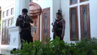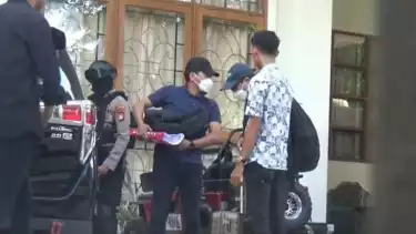Di perumahan BPH terlihat 2 penyidik KPK ditemani aparat kepolisian bersenjata lengkap, petugas KPK terlihat membawa sebuah koper dan dan sejumlah dokumen.