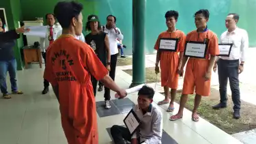 Rekonstruksi pembunuhan sadis guru ngaji tersebut dimulai dari adegan pertama berkumpul di warung tuak. Dimana mereka sudah membawa senjata untuk menghabisi nyawa korban.