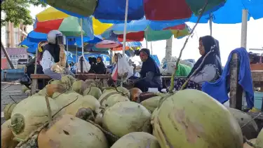"Saya hampir tiap hari beli kelapa muda di pasar ini, soalnya anak-anak di rumah paling hobi dengan air kelapa muda, saya biasa buatkan mereka es kelapa muda pakai gula merah, pokoknya paling segar kalau buka puasa," kata Harni.