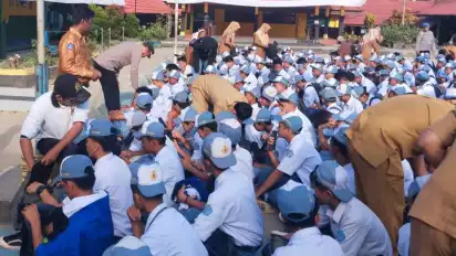 Polisi dan dewan guru melakukan razia tas terhadap para siswa di SMKN 4 Kendari
