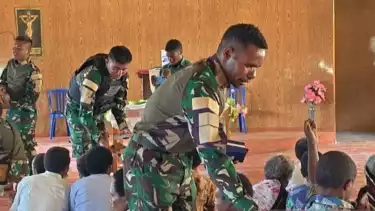 tvOnenews.com - Prajurit Satuan Tugas (Satgas) Pengamanan Perbatasan (Pamtas) Yonif 511/DY menyalurkan Alkitab dan pakaian layak pakai bagi warga Distrik Mokoni, Kabupaten Lanny Jaya, Papua Pegunungan dalam menyambut perayaan Hari Raya Natal 2025.