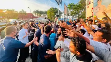 Presiden Jokowi Rela Jalan Kaki ke Hotel Demi Menyapa Ratusan Warga Baubau yang Menyambutnya