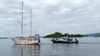 Sibolga, Sumatera Utara - Tim Pengawas Orang Asing (Pora) mengawal keberangkatan kapal pesiar berbendera Prancis, Yacht Exultet II, dari Pelabuhan Pelindo Sibolga, hingga ke luar perairan Indonesia, Sabtu (11/2/2023).