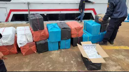 "Kami mendapat informasi dari masyarakat, terdapat kapal penumpang yang memuat barang yang diduga berupa BKC ilegal, sehingga kita lakukan penindakan," jelas Rizki pada Selasa (28/2/2023) siang.